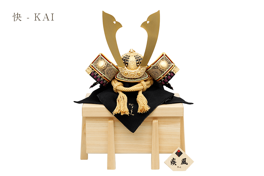 重厚感のある落ち着いた雰囲気がシックな兜飾り。品格のある佇まいは、職人の緻密で繊細な技術そのもの。