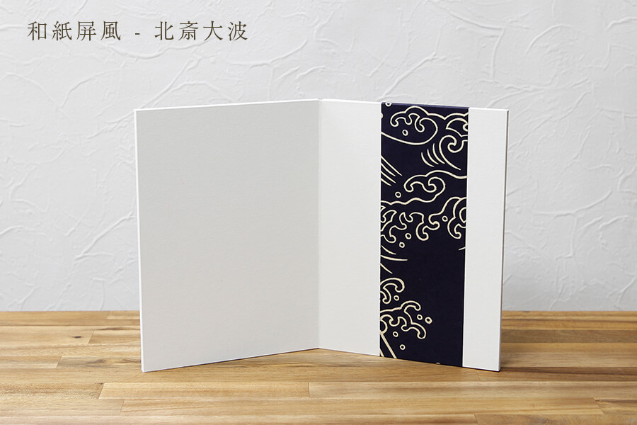 和紙屏風 北斎 大波:アクセントの帯には葛飾北斎の波柄をあしらった唐紙を採用しました。 - お道具