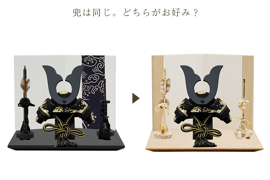 鍬形はマグネット式で簡単に取りつけることができます。 - 飾り台