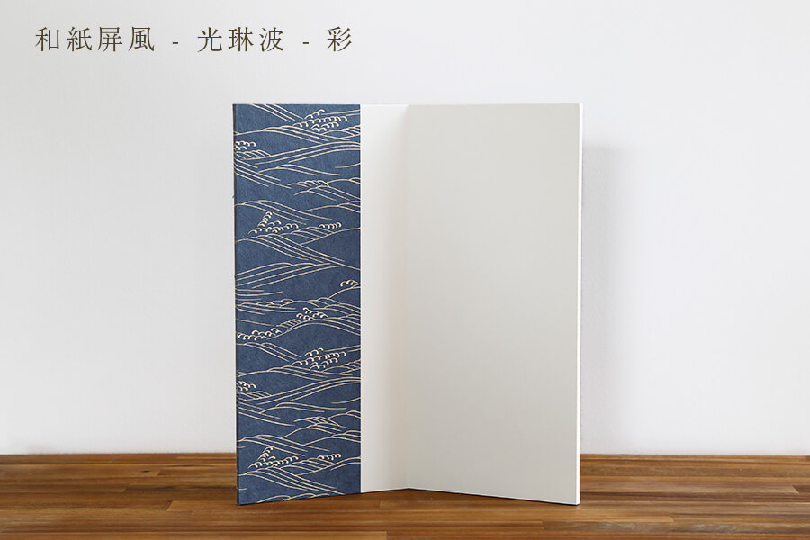 光琳波-彩:木の板に和紙を張り合わせ丁寧に仕上げました。水や波には、「清める」や「厄除け」(厄を流し去る等)の意味が込められており、縁起のよい柄として人気の高い文様のひとつです。 - お道具