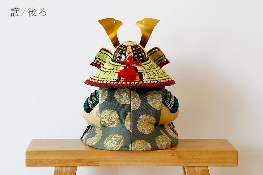 兜は取り外しが可能。兜には心木(※兜を立てる台座)と袱紗が付属しているので、お人形の隣に飾ることもできます。強く、優しく、まっすぐに育って欲しい。そんな想いを込めて制作しています。