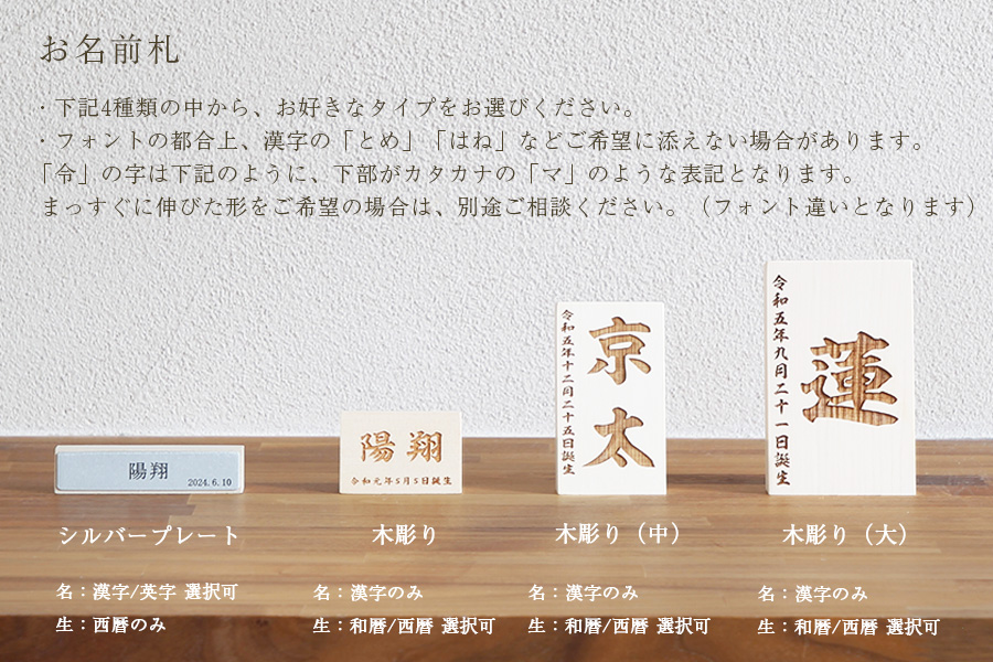 お子様ご誕生のお祝いにお名前札をプレゼント。 お好きな種類をお選びください。
