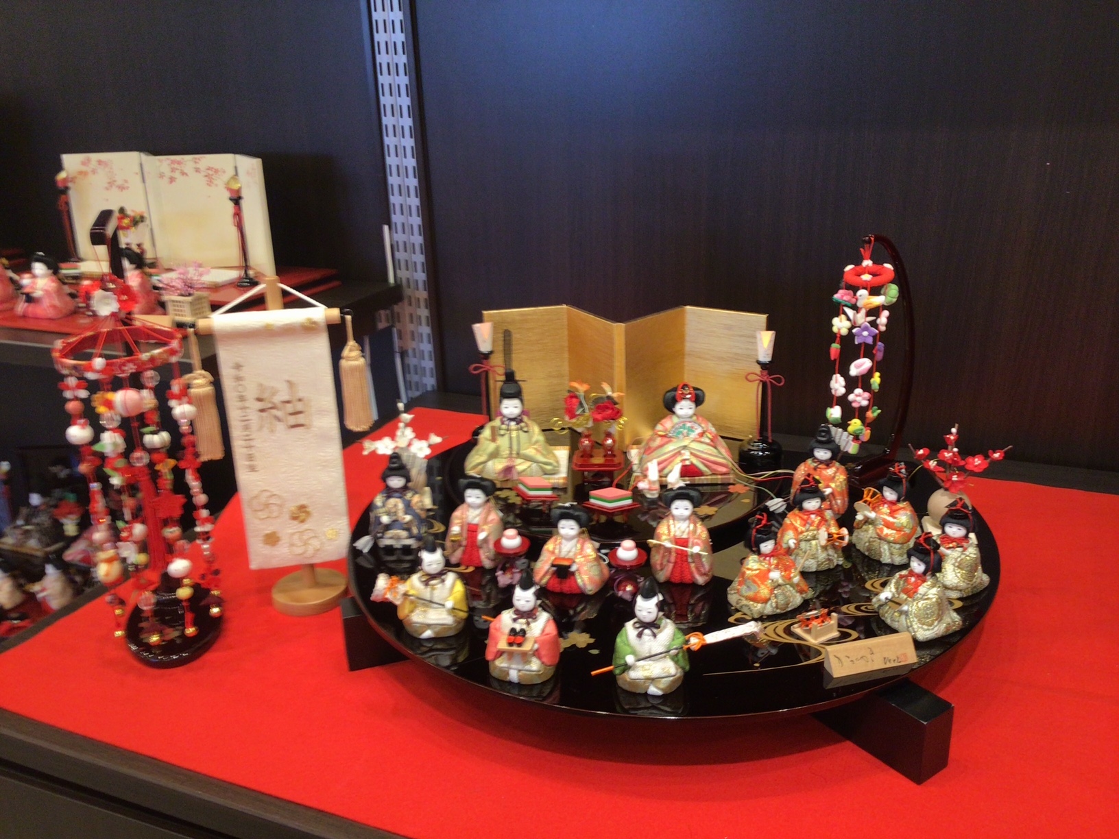 岩槻人形博物館で現在開催されている特別展 【THE 岩槻の人形史-受け継がれし人形、ここに見参!-】 に合わせてにんぱくのロビーでは、岩槻の人形店で制作されている人形を展示『IWATUKI NINGYO EXPO ロビー展示2期(10/17~30)』も行われております。ひととえからはコンパクトな十五人飾りのお雛様をお飾りしております。にんぱくにお越しの際はぜひご覧ください。